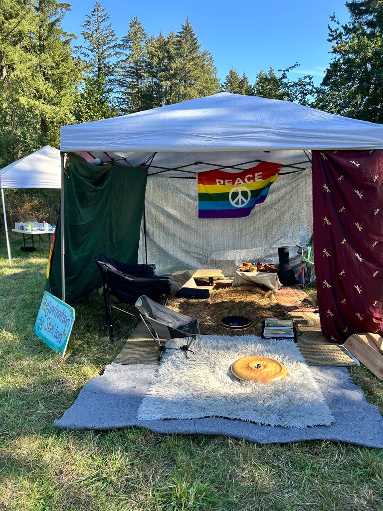 Every gathering, whether a festival, retreat, wedding, party, or conference, needs spaces where people can ease their nervous systems, reconnect with themselves, and build belonging in a way that feels gentle and real. The information below is what we’ve learned by having a Rest and Rejuvenation Station at Cascadia Song Rise, an annual gathering of about 333 people who sing and camp in nature.